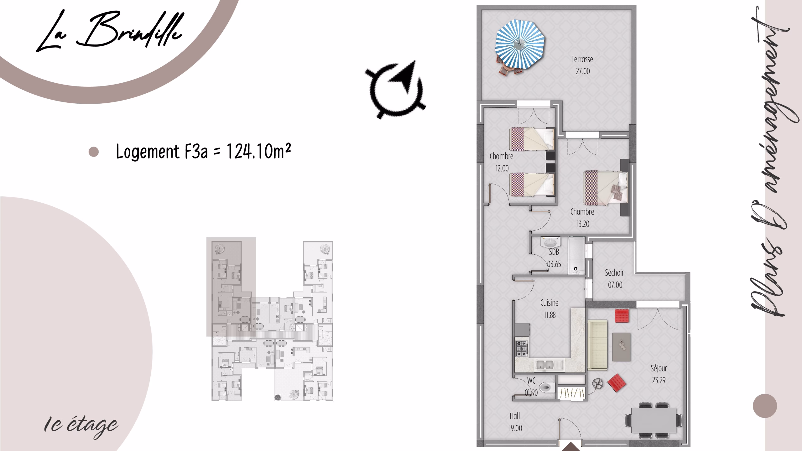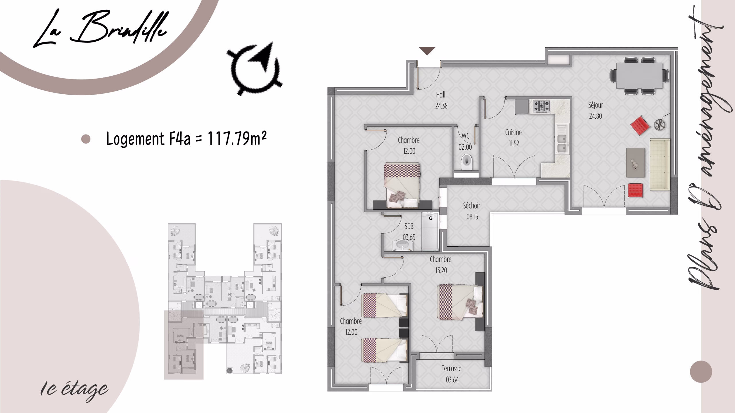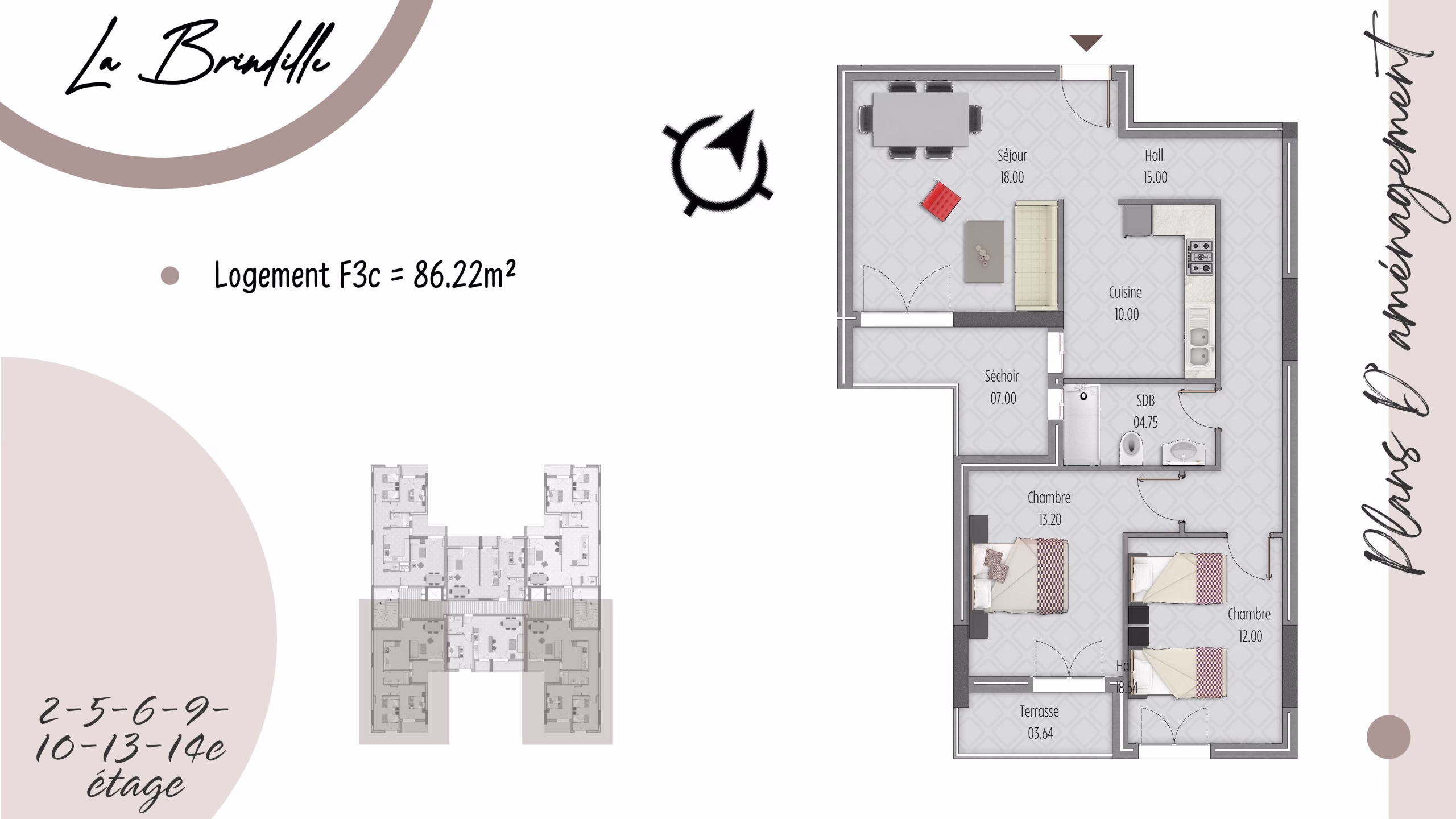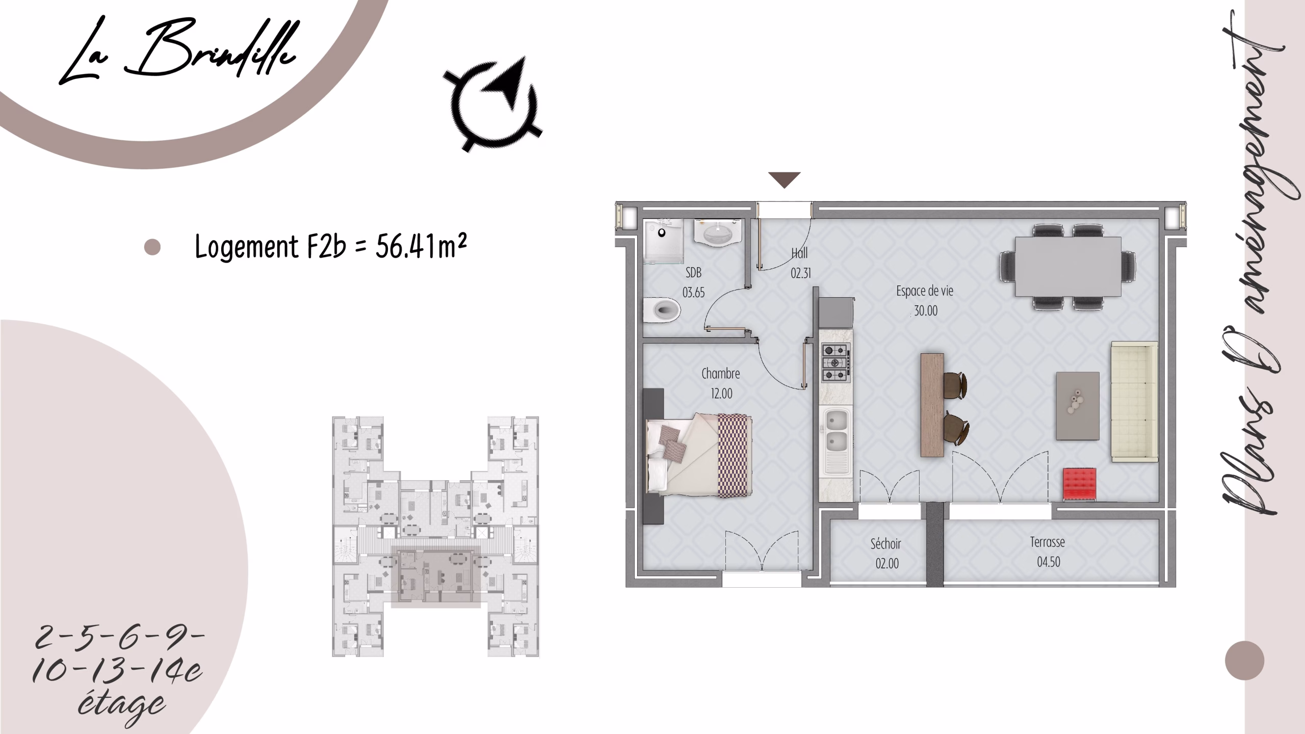 La Résidence La Brindille propose 39 logements spacieux, baignés de lumière naturelle grâce à de larges ouvertures et une orientation optimisée. Chaque appartement offre une ambiance chaleureuse, une ventilation naturelle agréable et une organisation des espaces parfaitement étudiée.