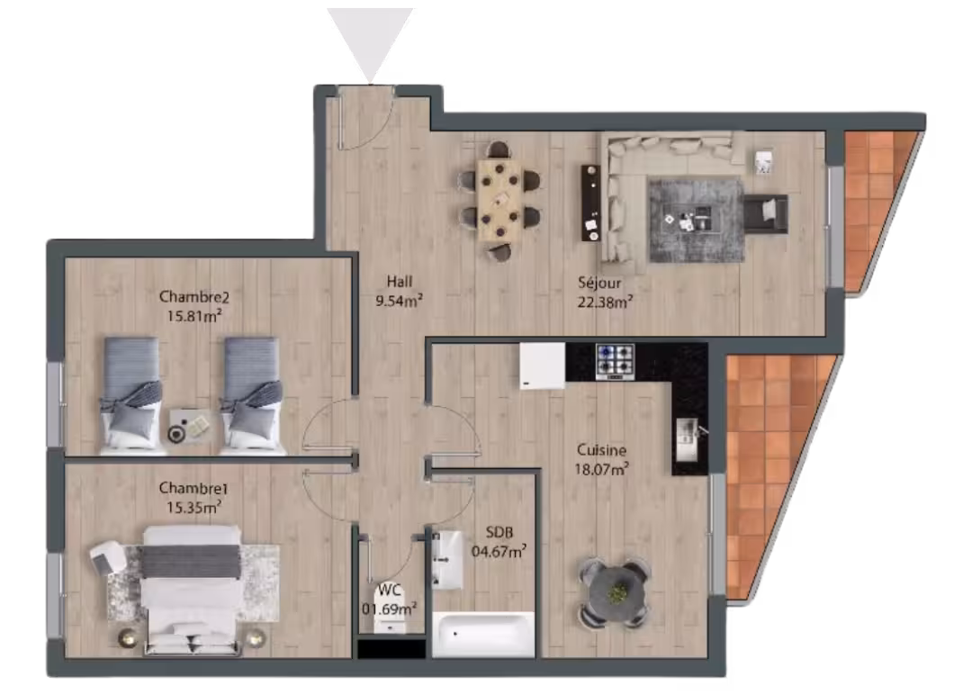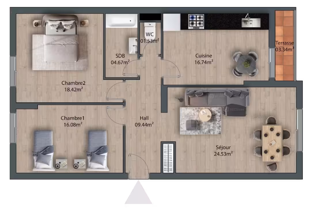 Cette résidence propose des appartements conçus pour répondre aux besoins des familles, des couples ou des investisseurs. Chaque logement est pensé pour offrir un espace de vie spacieux, lumineux et fonctionnel, tout en bénéficiant d’un cadre de vie agréable et idéalement situé.